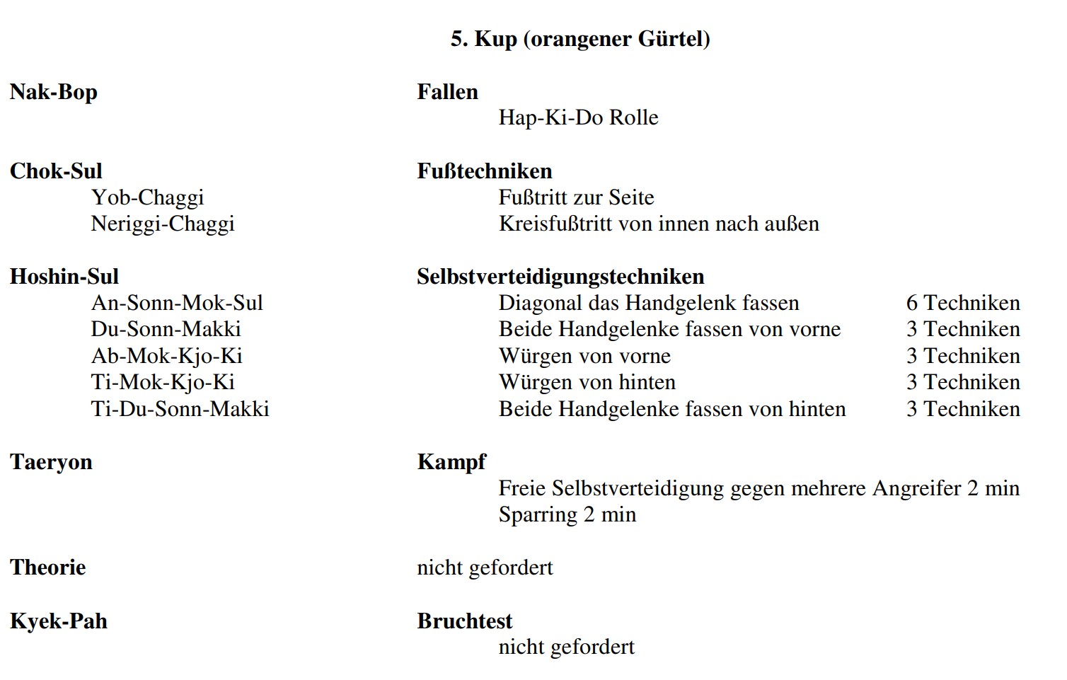 5. Kup – orangener Gürtel